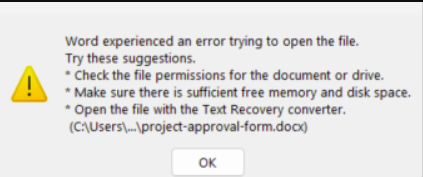When attempting to export a project as a Word document, this fails, but the project can be exported in other formats, e.g. PDF